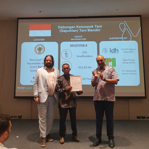 11 November 2024, Gapoktan Tani Mandiri Desa Laut Tador menerima sertifikat RSPO di Bangkok, Thailand. Anggota Gapoktan Tani Mandiri