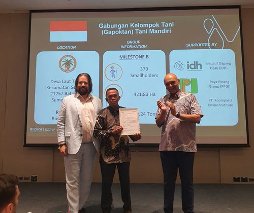 11 November 2024, Gapoktan Tani Mandiri Desa Laut Tador menerima sertifikat RSPO di Bangkok, Thailand. Anggota Gapoktan Tani Mandiri yang tersertifikasi RSPO sebanyak 379 pekebun dengan luasan 421,83 Ha. Proses Sertifikasi ini didukung oleh PT Koompasia Enviro Institut, Paya Pinang Group dan Inisiatif Dagang Hijau (IDH)